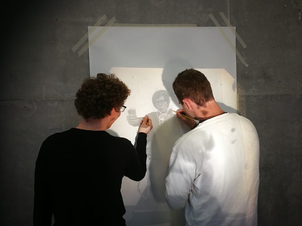 Paneldeltager og live kunstnerisk proces on site